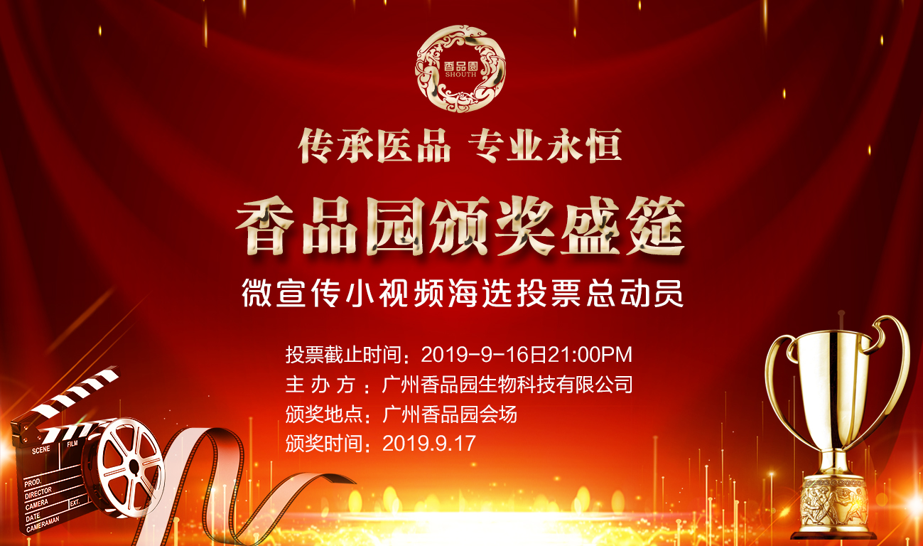 传承医品,专业永恒----广州香品园生物科技有限公司 微宣传小视频海选投票,我们将在9月16日21:00截止投票,选出优秀作品,并将给予获奖者丰厚的奖励。 活动规则: 1. 点开作品框……