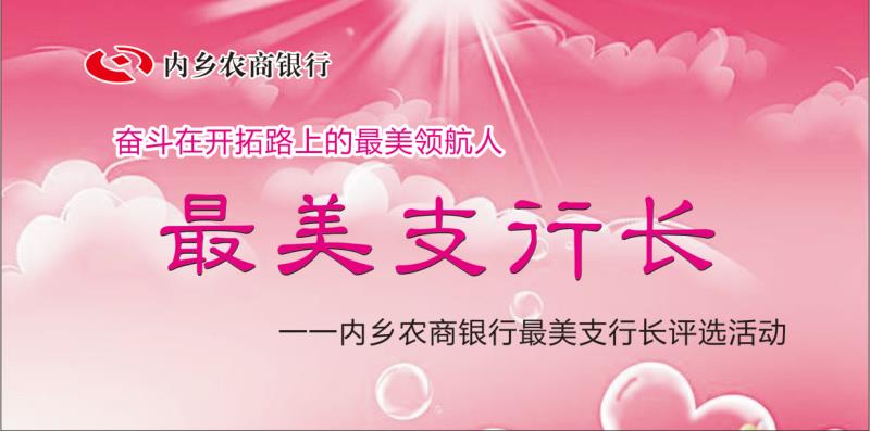 为展示内乡农商银行人的良好精神风貌,讴歌广大内乡农商银行干部职工立足岗位、服务社会、真诚奉献的感人事迹,内乡农商银行面向全县窗口单位开展了最美支行长投票的活动