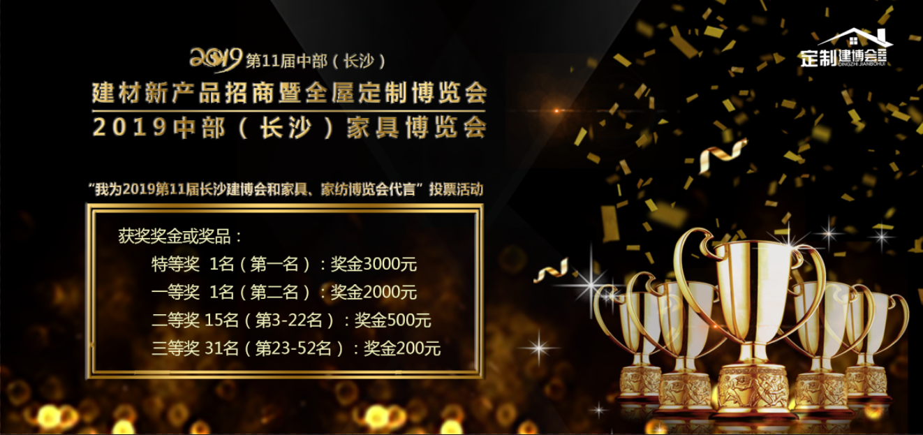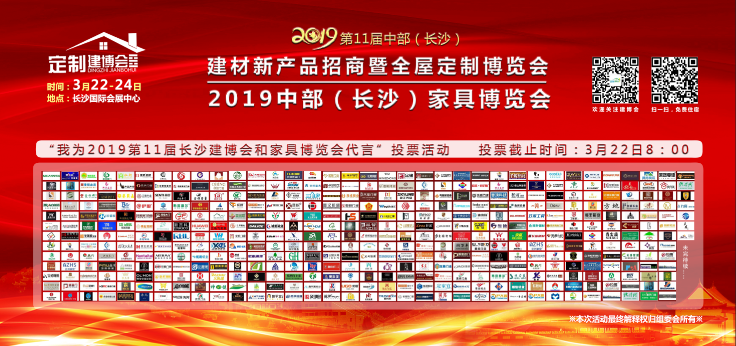 活动介绍 2019第11届中部(长沙)建材新产品招商暨全屋定制博览会 2019中部(长沙)家具博览会 "我为2019第11届长沙建博会和家具博览会代言" 投票截止时间:3月22日8:00 ……