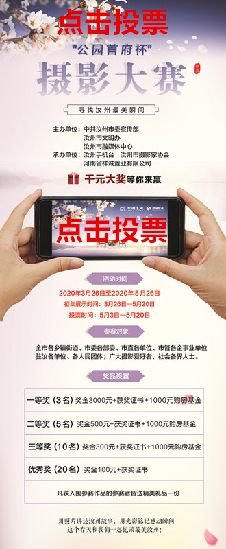 1 主办单位中共汝州市委宣传部汝州市文明办汝州市融媒体中心2 承办单位汝州手机台汝州市摄影家协会河南省祥诚置业有限公司3 活动时间2020 年 3 月 26日一 2020 年 5月 26日征集展示时……
