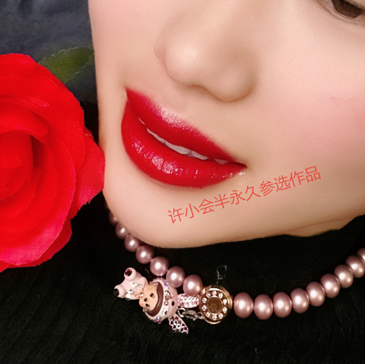 唇部作品简述:金玫瑰果冻嫣红+果冻亮橘+正红,调配比例:4:2:2
