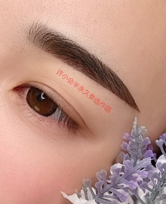 眉部作品简述:改蓝眉,金玫瑰金龙机,橙色走一遍,全程单针操作,整个操作零出血,零组织液。用色:金玫瑰免调套盒1号和5号色。