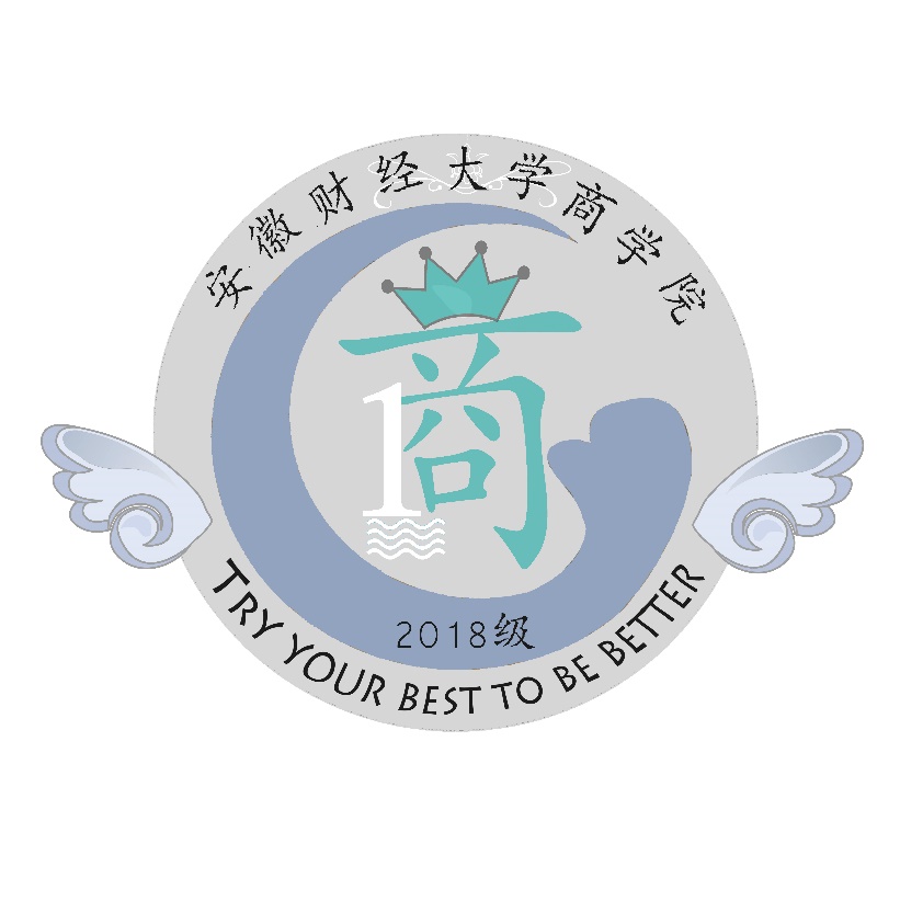 班徽整体色调清新简洁,外围由两圆组成,象征着班级的团结一心,两圆之间由中文(安财商)和英文(努力变得更好)组成,圆外插上理想的翅膀,中心由工管二字拼音首字母G构成,形似竖起了大拇指,代表2018级的我们对专业的自信与热爱;皇冠(象征王者的气息)和1构成商字,1(表示一班)结合水波纹看似帆船(非同一帆)寓意砥砺前行。