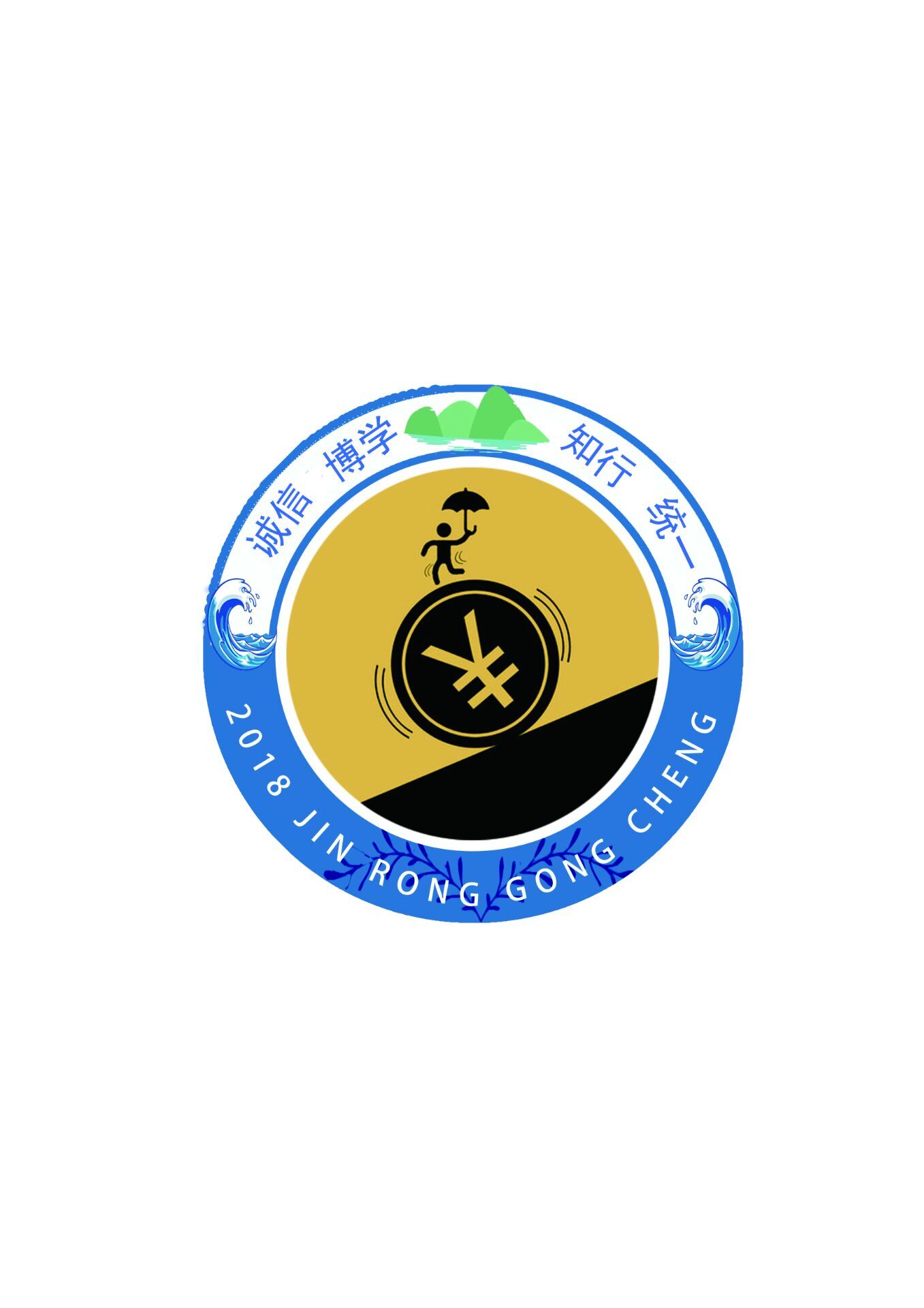 钱币表现出我们班级的专业特色“金融”,撑伞的小人表示一个人的力量太弱小,侧面表现金工班的团结,浪花代表困难,绿洲象征胜利,两边的学院校训意味着我们正秉着美好品质奔向心目中的一片绿洲。