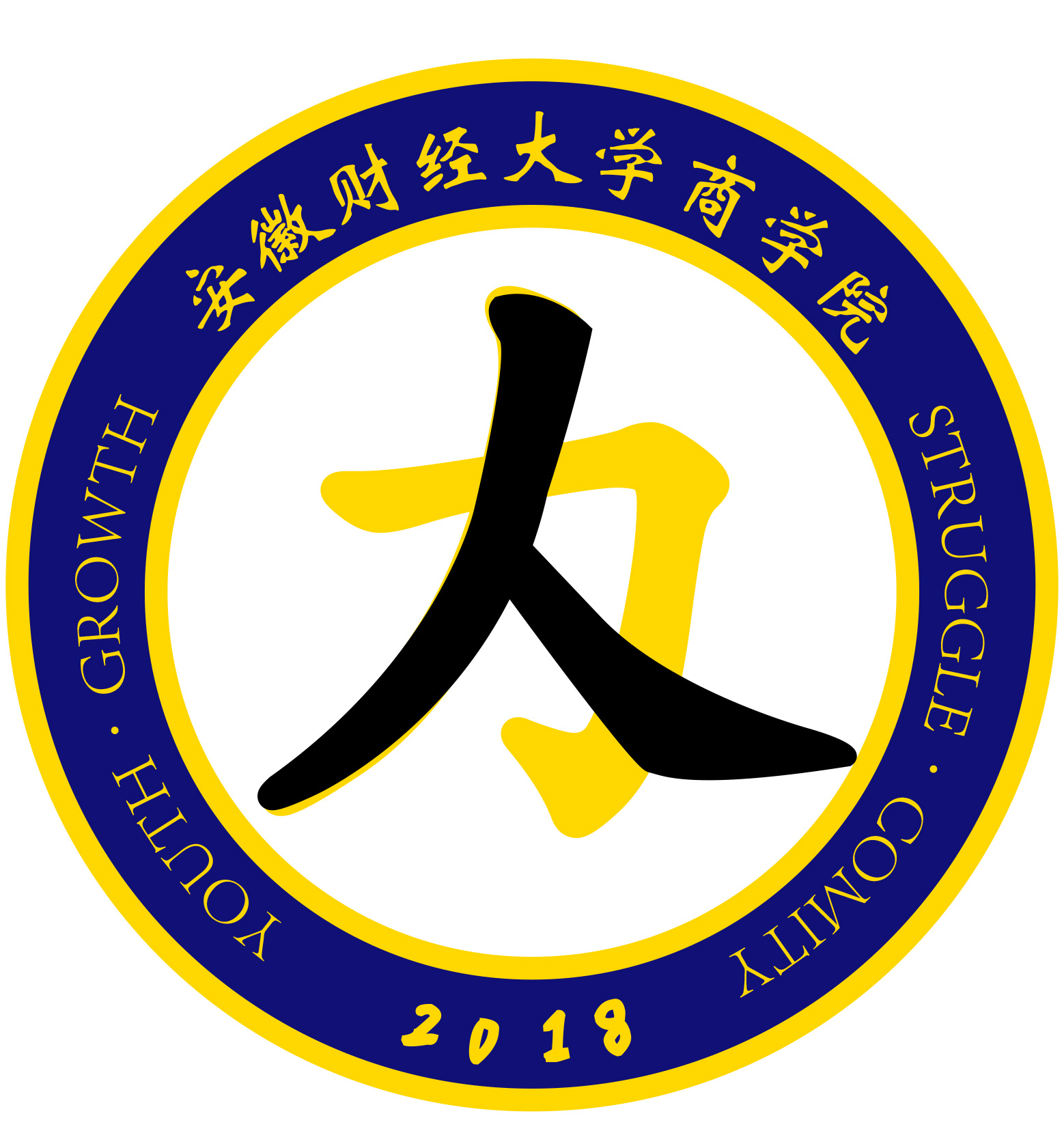 班徽整体呈现为一个圆形,外环采用普鲁士蓝和暗金色,代表着睿智与理性。内环采用纯白填充,简洁大方。“人”与“力”相交代表着我们18届人力班同学精神与情感的交融。
