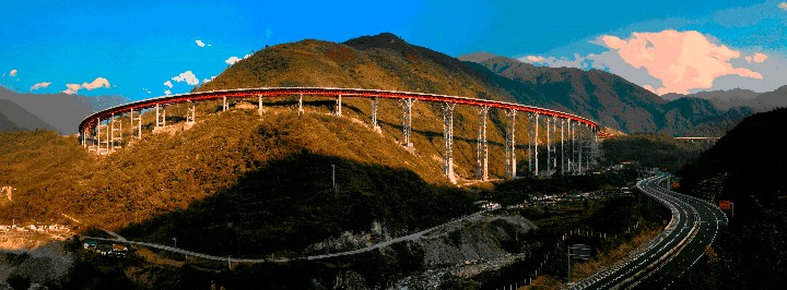 全长1811米,桥宽24.5米,共36跨,世界上最长的钢管桁架梁公路桥;第一座最高的钢管混凝土结构桥墩、组合桥墩、混合桥墩;第一次全面采用钢纤维钢管混凝土施工;2012年建成。