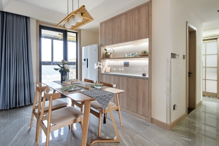 尽心选择天然属性的材质,还原材料本身的色泽,质感,温度,点缀室内绿植,尊重生命的努力,在居室内感受到自然地属性,植物,宠物,人物,和谐共处一室。落地窗下,斜晖脉脉,茗温尚在,生活的追求与意义莫过于此。