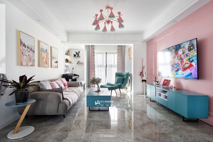 我始终秉承着用设计延续家的传承,成就温暖的港湾。业主是夫妻俩人和俩只猫猫,对于新家他们想要甜到冒泡的幸福和自由,把业主喜爱的粉色融入在内,让业主再其中享受浓浓的爱意。本案主要配色是粉色和红蓝的配色衔入一些灰,半素半艳的合宜搭配,整体搭配让空间素雅而有不单调,粉嫩而不稚嫩,从场景的塑造和陈设的布置。
