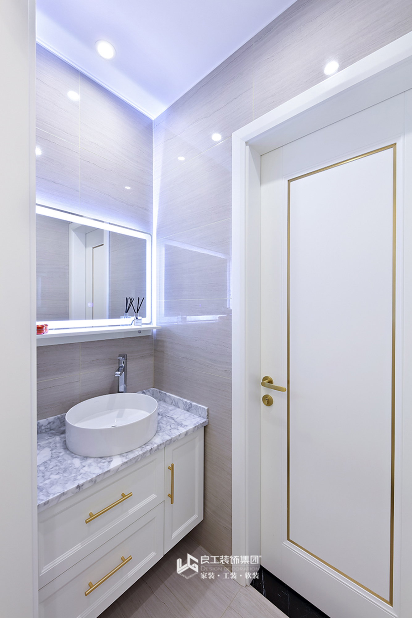 业主是个干练的生意人,比较注重生活品质和整体气质,同住的父母则更注重功能性和归属感,在糅合各个家庭成员的喜好之后确定为低调、复古又不失奢华的港式轻奢风,再在房间内加入一些个性的标签元素,具有量身定做的归属感。
