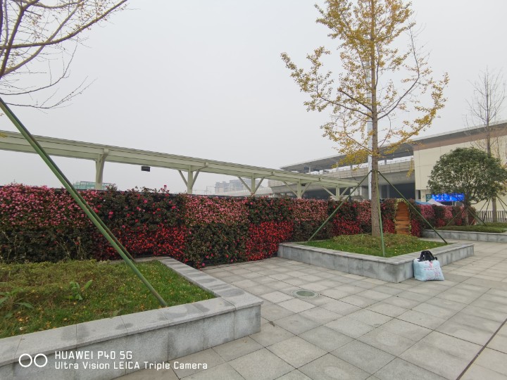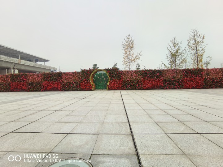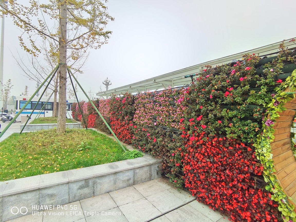建设思路:采用大量的鲜艳的时令花卉,结合广场周围的交通特点,立体鲜花墙上开了一扇门,便于乘客通行。