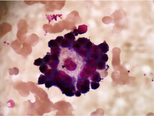 幼红细胞造血岛,中心为一个巨噬细胞,周围环绕不同发育程度的幼红细胞。幼红细胞造血岛在贫血性疾病的诊断和鉴别诊断、良恶性噬血细胞综合征的鉴别、急性白血病疗效判断方面有重要意义。
