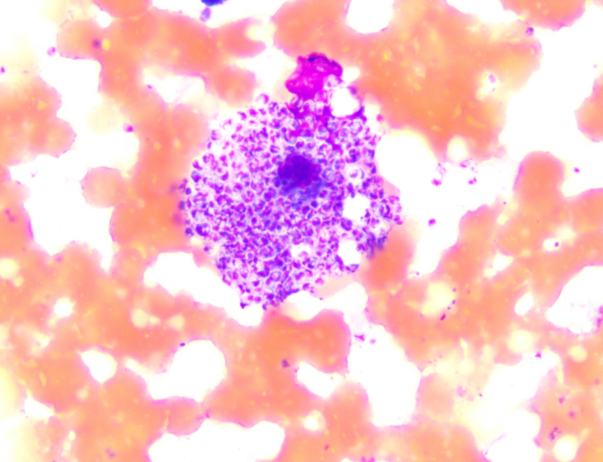 本例来源于HIV感染者晚期,骨髓组织细胞内马尔尼菲篮状菌大量增殖。对于马尔尼菲篮状菌感染机体主要由CD4+T 细胞介导,Th1细胞介导细胞免疫清除胞内病原体,Th2 细胞介导体液免疫,清除胞外病原体。HIV主要侵犯人体的免疫系统,包括CD4+T淋巴细胞、单核巨噬细胞和树突状细胞,最终破坏机体免疫功能使马尔尼菲篮状菌在单核巨噬细胞系统内大量增殖。