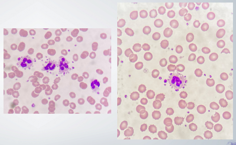血小板黏附、围绕于中性粒细胞(或偶尔黏附于单核细胞)的现象称为血小板卫星现象,有时可见血小板吞噬现象。此时,血小板和中性粒细胞的形态和功能均正常。血小板卫星现象偶见于EDTA抗凝血,因EDTA和免疫球蛋白相互作用,非特异性结合血小板,使得被抗体包被的血小板与中性粒细胞相结合。因血小板被误计为是白细胞,故此血小板卫星现象也成为血细胞分析仪血小板计数假性减少的原因之一。