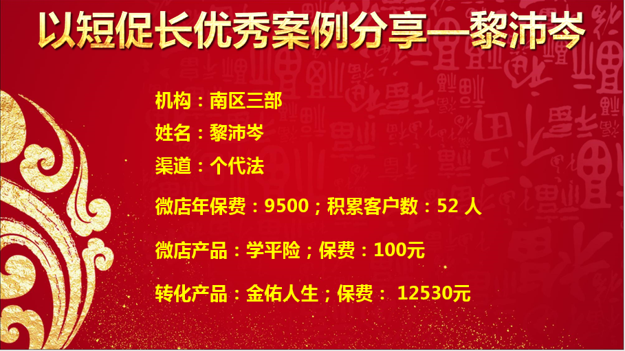 非常感谢公司给我们这么一个获客的利器,希望我能在这条充满爱心、奉献的道路上越走越远,为更多的人送去幸福安康的保障。