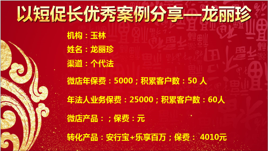 三年期间,我积极地维护客户,以优质的服务态度,协助刘先生处理好相应问题,在见面过程中都寻找机会向他宣传我们公司和公司产品,去年他终于被我的真诚以及专业服务感动,主动向我了解我们公司有什么适合他的产品(后来我了解到,刘先生已经了解了其他同业公司的产品),经过我的详细讲解,刘先生对我是专业服务非常想放心,先投保了安行宝,两个月后又投保了乐享百万。