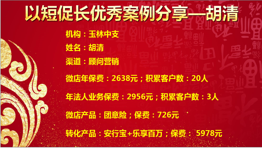 过后我利用一次保单年检的机会知道了他们一家的保险缺口,从而签了他和他爱人的安行宝和乐享百万,合计保费5978元。继续跟进他们夫妻的养老金缺口。相信坚持总有收获的。