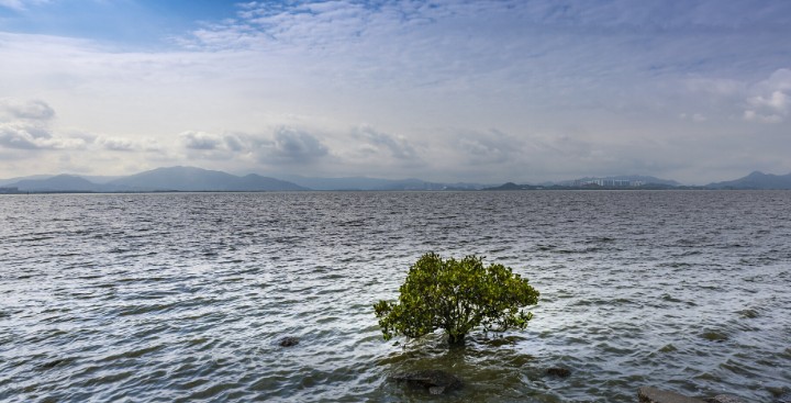 福田红树林位于繁华都市的市区内,与香港隔海相望,在国家级重点保护区里,福田红树林自然保护区是面积最小的。